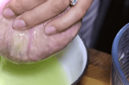 Дивіться скільки соку залишилося! Його виливаємо, він нам не потрібен.