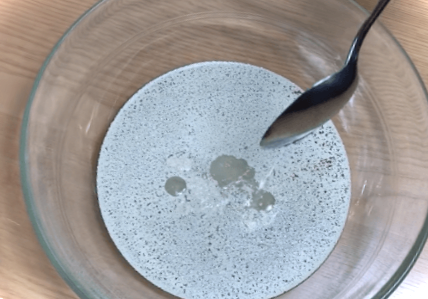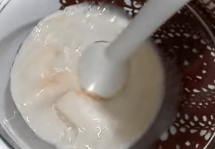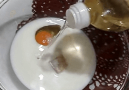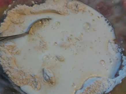 Крок 2. Додаємо до них тепле молоко та розмішуємо ложкою.