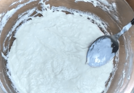 У результаті має вийти тісто, як густа сметана, що падає, але не розтікається.