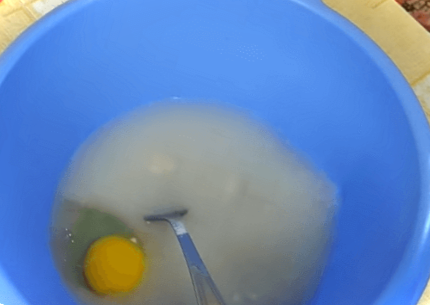 Крок 3. В окрему чашку розбиваємо яйце, додаємо щіпку солі та розбовтуємо його до однорідності. Додаємо яйце до борошняної суміші і дуже добре перемішуємо суміш, щоб не залишилося шматочків.