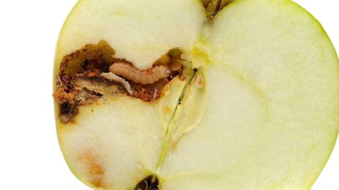 Ще одна причина того, що чорніють яблука, особливо це проявляється при зберіганні – ураження хробаками. У такому разі плоди опадають ще незрілими.