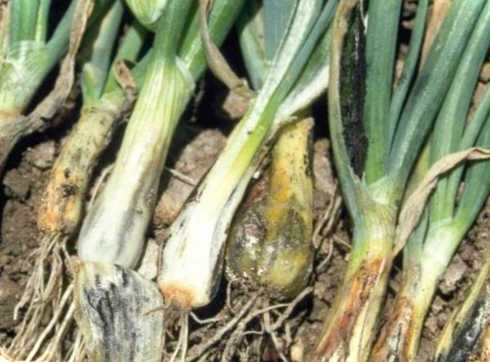 Уражене пір'я вже не дає того харчування, що необхідно рослині, та й сама цибулина, що знаходиться в землі, теж уражається. Через нестачу харчування хворий коренеплід далі розвиватися не може. Пір'я зупиняється в рості, а коренеплоди залишаються дрібними і далі не наливаються.