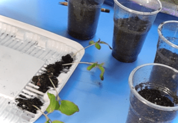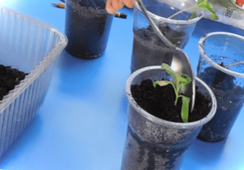 У підготовлені ємності - пластикові стаканчики насипаємо ґрунт на половину об'єму, поливаємо землю. Піддаємо саджанець у загальній ємності вилкою і акуратно дістаємо саджанець, намагаючись не травмувати коріння разом з невеликою грудкою землі.