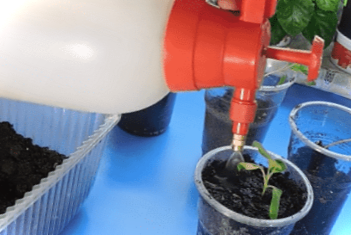 Тому стаканчики потрібно вибирати більшого обсягу. Найкраще підійдуть одноразові пластикові стаканчики ємністю не менше 0,5 літра. Підійдуть також пластикові пляшки - півторашки з-під газованої води або квасу, обрізавши їх на половину висоти. Важливою умовою посадки в такі ємності є наявність дренажних отворів у дні. Для цього можна трохи зрізати в 2-3 місцях дно біля стаканчиків або проткнути гарячим цвяхом дно пляшки.