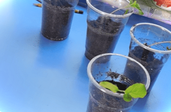 - У пластикові стаканчики насипаємо землю на 2/3 об'єму. Робимо заглиблення у землі розміром 1,5х1,5 см;