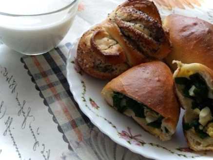 Тістечка із зеленою цибулею та яйцем із дріжджового тіста в духовці