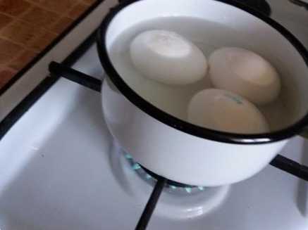 Ставимо варити яйця. Як варити їх, всі знають, зупинятись на цьому не будемо.