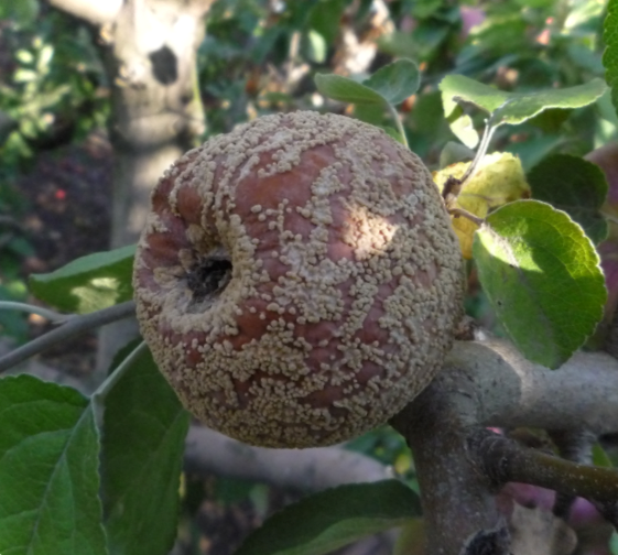 Назва говорить сама за себе, тому що листя яблуні набуває обпаленого, висушеного вигляду, оскільки воно скручується. Слід зрізати всі гілки, що засохли, на вашому дереві. Обприскування не так сильно допоможе на той час, коли ви побачите пошкодження листя, але дізнайтеся у місцевих майстрів-садівників про застосування Серенади Оптимум, міді або бордоської суміші. Профілактика: бактерії вогнівки живуть усю зиму в корі дерева, тому навесні перевірте, чи немає на корі плям, що сочилися, і своєчасно проведіть обприскування, щоб зупинити бактерії, поки вони не вразили більшу кількість дерев.