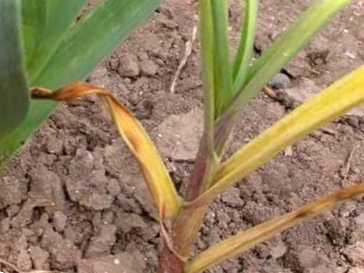 - Фузаріоз або гниль донця, якщо викопати голівку, то ви не побачите, що вона не має коріння або вони підгнили.