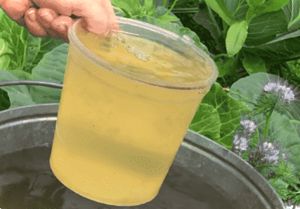 Про готовність говоритиме специфічний запах від настою, а також бульбашки на поверхні рідини. Перемішайте добре настій, щоб залишки корисних речовин змилися з поверхні трави. Потім 1 л трав'яного настою розводять у відрі води та поливають капусту під корінь. Витрата - 1 л на одну рослину. Повторне підживлення проводять через 10-15 днів.