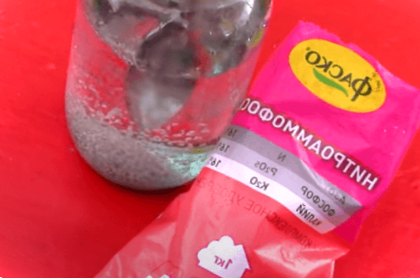 З цією метою застосовують комплексні мінеральні добрива, наприклад, нітроамофоску. До його складу входять азот, фосфор і калій у рівних кількостях. Нітроамофоску краще спочатку розчинити у невеликій кількості гарячої води. На 1 л води додайте 1 ст. л. нітроамофоски, розмішайте, щоб вона добре розчинилася. Після цього розчин переливають у лійку з водою (10 літрів). Поливають рослини в похмуру погоду. І перед тим, як внести нітроамофоску, розпушіть ґрунт біля куща і на відстані 30 см від куща зробіть борозенку.