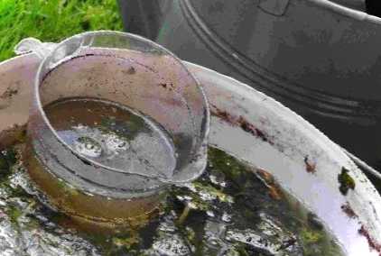 і вилийте у 10-літрове відро з водою, розмішайте. Добрива готові для застосування. Набираючи розчин для поливу, щоразу рідину розмішуйте, щоб хлібні крихти не осідали на дні ємності.