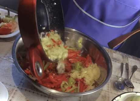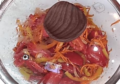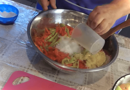 І зараз все дуже ретельно перемішуємо, щоб цукор та сіль рівномірно розійшлися по всій овочевій масі.