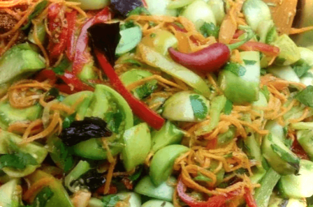 Восени доводиться забирати кущі помідорів, а на них ще залишаються зелені плоди. Не викидайте їх! Зробіть краще з них салат по-корейськи на зиму, виходить дуже смачна заготівля.