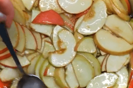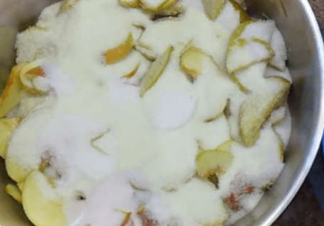 Закриваємо ємність кришкою і залишаємо на деякий час, щоб яблука пустили сік та розчинився цукор. Найкращий варіант підготувати фрукти ввечері та залишити їх у такому вигляді на ніч.