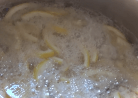 Опускаємо підготовлений лимон у киплячий сироп і варимо на повільному вогні 5-7 хвилин.