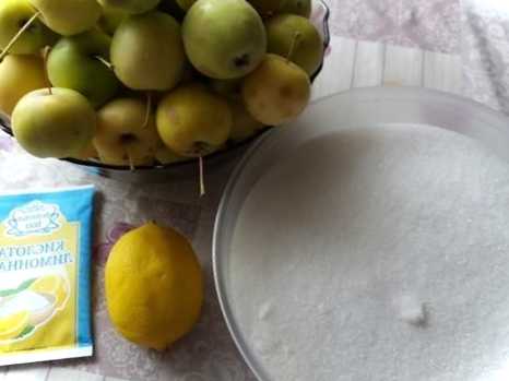 Крок 1. У великий таз наливаємо 3 літри води, додаємо туди лимонну кислоту, розмішуємо. Яблука очищаємо від серцевини та нарізаємо часточками або невеликими шматочками. Нарізані плоди відразу відправляємо в таз із водою та лимонною кислотою, щоб вони не потемніли.
