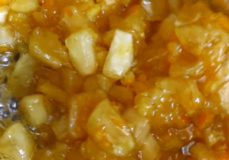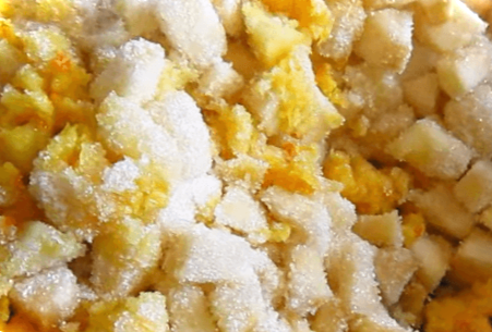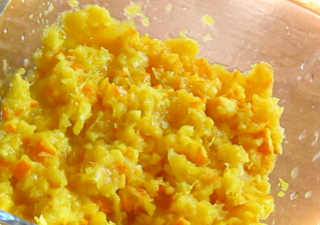 Потім апельсин разом із шкіркою пропускають через м'ясорубку.
