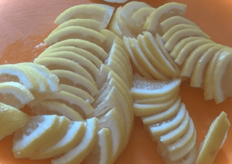 Крок 2. Поки вариться сироп, нарізаємо тонкими скибочками лимон. Кісточки обов'язково прибираємо, інакше готове варення гірчить.