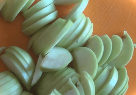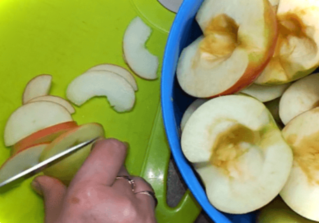 Крок 1. У яблук вирізаємо серцевину з насінням і нарізаємо їх тонкими скибочками - часточками.