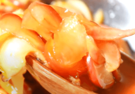 При безперервному і тривалому перемішуванні насолоди у вас ніколи не вийдуть часточки. Якщо ви хочете зварити з цілими та прозорими скибочками, тоді застосовуйте принцип дробового варіння. Тоді шматочки фруктів залишаться цілими, не розвареними. Тому шматочки плодів попередньо опустіть у гарячу воду, а потім одразу в холодну, тобто перед варінням проведіть спочатку бланшування. Це дозволить видалити надлишки повітря з пухких тканин фрукта.
