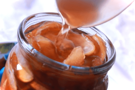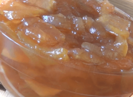 І цей рецепт теж досить простий. Але готується трохи інакше, ніж попередній варіант. Але в результаті ви отримаєте бурштинове, з прозорими часточками, смачний десерт.