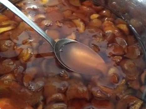 Готовим варення буде тоді, коли часточки стануть прозорими бурштинового кольору, а сироп важко стікатиме з ложки.