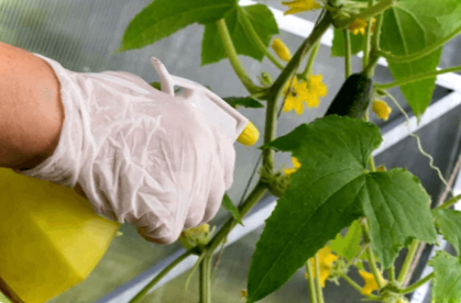 Без комах - бджіл та джмелів запилення бджолозапильних сортів огірків неможливо. Саме комахи переносять пилок з тичинок на маточка. Для їх залучення відкривайте двері або вікна теплиці, особливо у теплі дні. Для бпробільшого залучення зробіть для них приманку. На 1 л теплої води додайте 1 год. л. меду або 1 ст. л. цукру. Розмішайте та обприскуйте рослини через 1-2 дні теплим розчином, так краще зберігаються запахи, що привабить більше бджіл. Обприскування проводять рано вранці, тоді бджоли встигнуть облетіти всі рослини. Але робіть це без фанатизму. Поставивши, наприклад, банку з медом у теплицю, бджоли влаштують собі бенкет, а про квіти з нектаром просто забудуть.