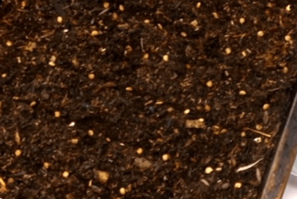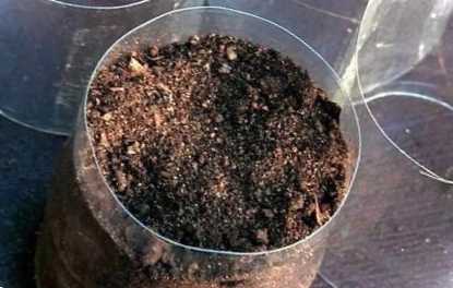 Підготовлені ємності розміщують у ящику, дно якого покрийте поліетиленовою плівкою або покладіть тацю, щоб туди стікали надлишки води. Наповніть ємності (стаканчики, пакети) живильним ґрунтом, за складом він може бути таким же, що й для посіву насіння. У стаканчику робимо заглиблення глибиною 2-3 см.
