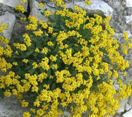 Навесні ця культура розстилається по рокарію у вигляді золотаво-зеленого килима. Ауринія скельна - це багаторічна культура, що стелиться, що має другу назву "золотий пил". Батьківщина рослини - Центральна та Південно-Східна Європа. Виростає до 20 см, завширшки - 30 см. Листя у формі овалу, має сіро-зелене забарвлення, довжина 3-7 см. Під час цвітіння кущик усипаний яскраво-жовтими квітами. Вони не великі за розмірами – до 1 см, всі зібрані в пензлі. Цвітіння починається у травні.