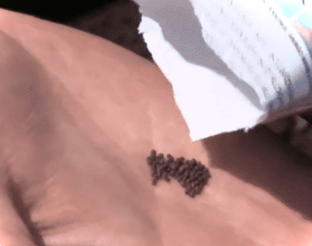 Борозни зволожуємо, поливаємо водою з лійки, щоб насіння відразу отримали вологу. Насіння пересипаємо на долоню, білий аркуш паперу, зігнутий навпіл, або засипаємо в спеціальну сівалку для дрібного насіння. І сіємо насіння, намагаючись з розподілити якомога рідше. Але з дрібним насінням так буває складно вчинити, тому приготуйтеся до того, що посадки доведеться проріджувати. Щоб не загуснути посадки, дрібне насіння можна змішати з інертними речовинами (піском, крейдою). Розсипаючи суміш насіння з піском, легше досягти рівномірності розподілу насіння в борозенці.