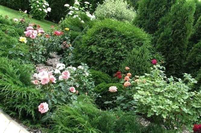 Троянди та хвойні можна поєднувати разом ці рослини і яким чином?