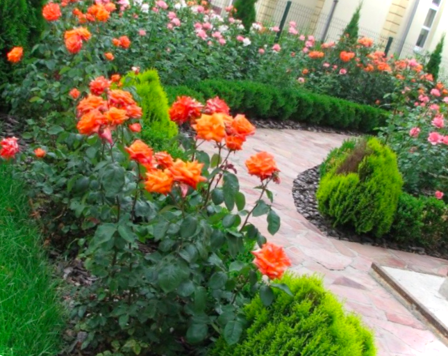 Можна сміливо говорити про те, що при грамотному підборі рослин, вам вдасться створити гарну композицію троянд і хвойників, створити гарний ландшафтний дизайн на території, де вже росте ялина або сосна. Не варто відмовлятися від хвойників, вони завжди виглядають красиво та актуально, радують вас приємною зеленню, як влітку, так і взимку. Більше того, хвойні культури дуже добре переживають холодні періоди нашої кліматичної зони.