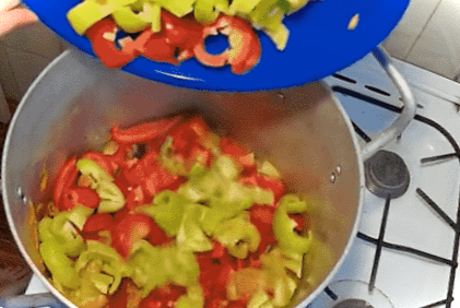 Чистимо і нарізаємо перець, помідори, часник. Пропускаємо їх через м'ясорубку або подрібнюємо блендером.
