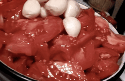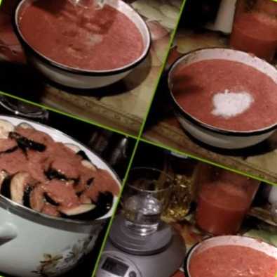 В останню чергу заливаємо все прокрученими через м'ясорубку томатами.