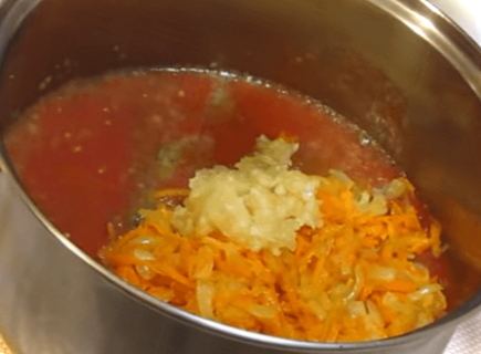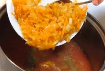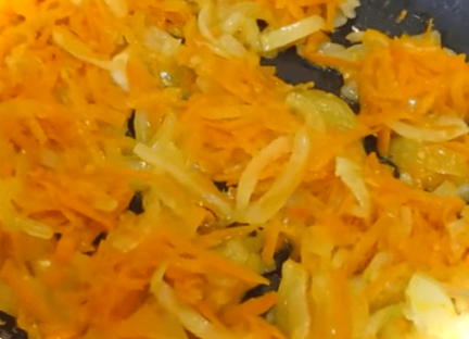 Слідом у каструлю відправляємо обсмажену цибулю з морквою,