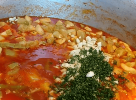 Легко запам'ятати: кожен овоч додається через кожні 10 хвилин.Крок 6. Через 10 хвилин останніми додають оцет,