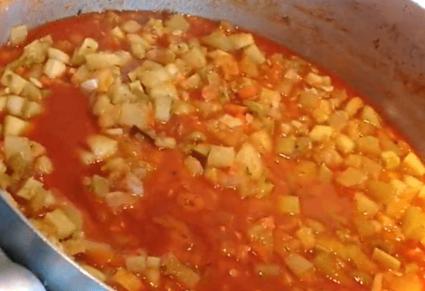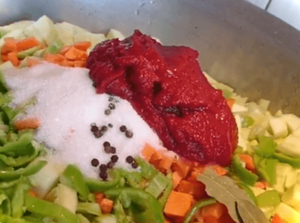 Суть приготування полягає в нарізуванні та перемішуванні овочів, заливанні маринадом, розкладанням по банкам та подальшою стерилізацією. Як все правильно робити, подивіться у відео.