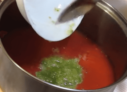 Крок 3. Помідорну масу ставимо на вогонь, доводимо до кипіння та варимо 8-10 хвилин.