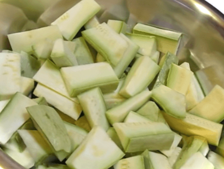 У молодих кабачків шкірку можна не зчищати, а ось у зрілих екземплярів щільну шкірку очищають.Крок 2. До нарізаних овочів у каструлі додаємо воду,