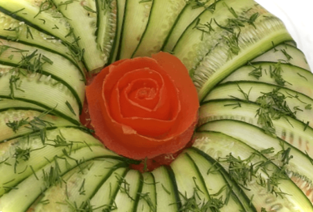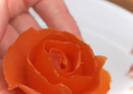 Крок 4. З помідора в колі ми вирізали шкірку, з нього ми робимо троянду для прикраси.
