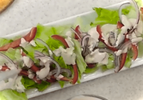 Баклажани люблять усі. А якщо ще він присутній у салаті, то це точно не залишиться без уваги. Цей рецепт зовнішнім оформленням схожий на попередній. Однак, інгредієнти тут трохи інші. Але від цієї страви не стане менш смачною. Приготуйте таку страву і вона вас підкорить красою та смаком!