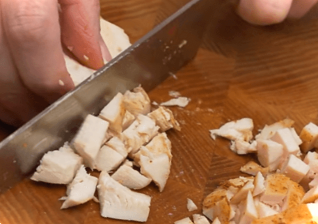 Крок 3. Розріжте запечену курку маленькими кубиками.