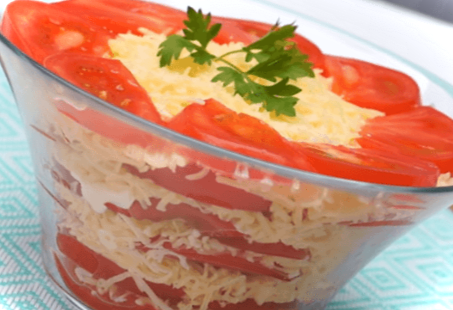 Салат з помідорів із сиром виходить дуже смачним та красивим. Помідори нададуть страві легкість, а сир – ситність. Обов'язково його приготуйте, гості будуть задоволені!