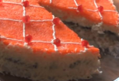 Ситний та дуже смачний салат прикрасить святковий стіл на Новий рік. Рецепт дуже простий і не забере багато часу. Гарний, він буде прикрасою серед інших страв та закусок.