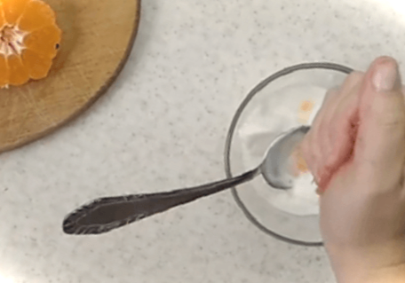 крок 5. Готуємо соус. До сметани додаємо сік із половинки мандарину та 1 ст. л. соєвого соусу. Ретельно перемішуємо до однорідного стану.
