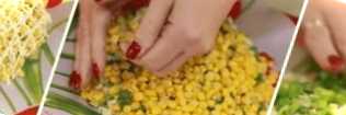 Солити потрібно після того, як перемішаєте салат, щоб не пересолити, адже сир та гриби достатньо солоні.5 шар - консервована кукурудза, яку попередньо необхідно відкинути на друшляк, щоб із неї скла зайва рідина.