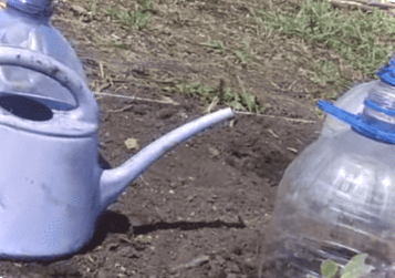 - Полив проводять дуже обережно з лійки через отвори у пляшках або крізь покривний матеріал.
