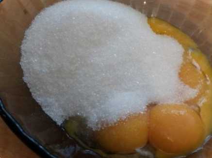 До жовтків додаємо цукор