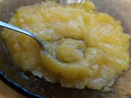 і ложкою розтираємо білки до того стану, коли яєчна маса стане блідо-жовтою, а крупинки цукру розчинилися. На це піде 3-5 хвилин.